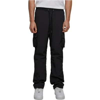 Urban Classics Men's Straight Leg Nylon Cargo Pants, Black, 4XL