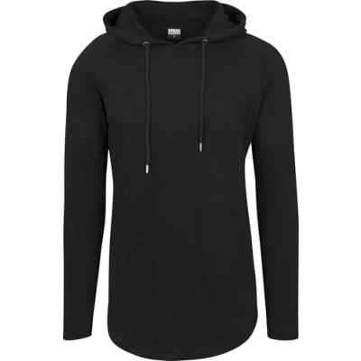 Urban Classics Extra long cut long-sleeved hoodie in trendy colours with light stretch thanks to cotton/polyester mix and round stitched hem Characteristic of a hoodie is the hood, which should not be missing here - this has an inner drawstring through which the hood can be pulled deep into the face The lightweight terry fabric ensures that the jumper is not too heavy and you can wear it not only in winter but also easily in summer without sweating The "Shaped" stands for the rounded hem, which is sewn round on the sides of the otherwise simple, plain hoodie and ensures a real eye-catcher