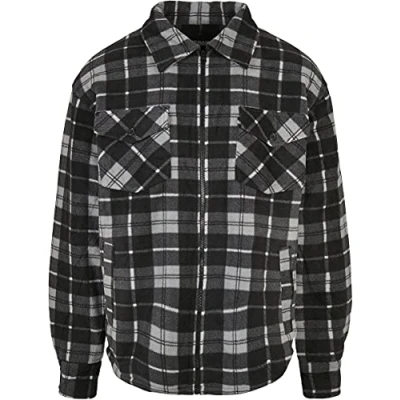 Urban Classics Plaid Teddy Lined Shirt Jacket Summer jacket, Men's, Size: Small, Black/white