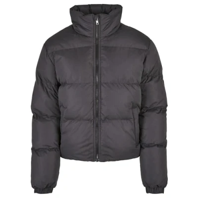 Short, warm lined and padded women's buffer jacket with stand-up collar Made from polyester with taffeta lining Loose fit, side pockets Elastic drawstring with stopper in the hem A click on the brand name leads to the Urban Classics Brand Store and even more trendy streetwear