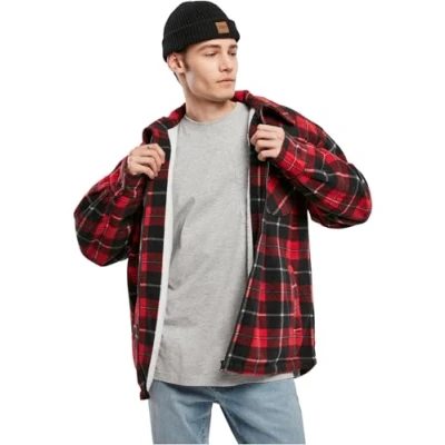 Lightweight men's jacket in shirt style with large check pattern Polar fleece with sherpa lining in the body and taffeta lining in the sleeves Side pockets, chest pockets and cuffs with buttons Front zip and wide fit A click on the brand name leads to the Urban Classics Brand Store and even more trendy streetwear