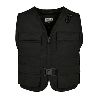 Short cut vest with many practical pockets The 4 front pockets have all Velcro fasteners Zip and clips ensure a perfect fit and fit of the vest Practical carabiner on the shoulder