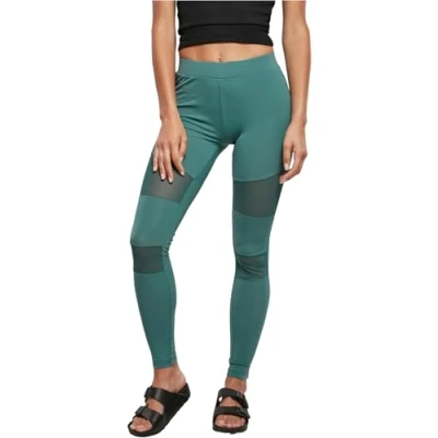 URBAN CLASSICS Tech Mesh Women's Leggings, High Waist Sport Leggings with Inserts, Stretchy Regular Skinny Fit and Tapered Ankle, Colour: Paleleaf, Size: Medium
