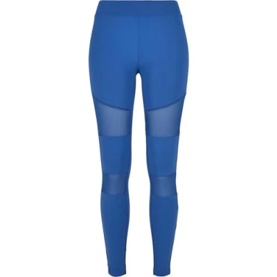 URBAN CLASSICS Tech Mesh Women's Leggings, High Waist Sport Leggings with Inserts, Stretchy Regular Skinny Fit and Tapered Ankle, Colour: Sporty Blue, Size: X Small