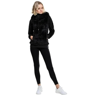 Urban Classics Teddy Hoodie, Women's, Size: Large, Black