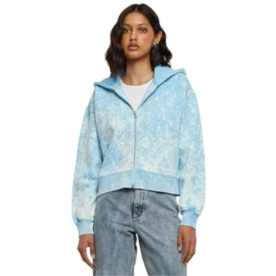 Eye-catching: the special wash makes the Urban Classics women's sweat jacket an eye-catcher Contrasting: the urban fashion piece impresses with a combination of casual oversize fit and short length Soft material: the fabric used made of cotton and polyester promises you comfort at the highest level Casual: the oversize fit with overlapping shoulders not only looks great, it is also super comfortable Street style: combine the women's zip hoodie with the essentials of your street wear wardrobe
