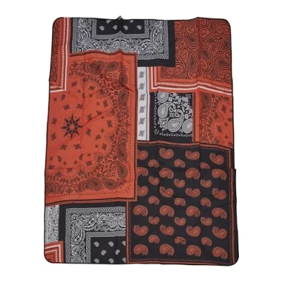 Urban Classics Unisex Bandana Patchwork Print Blanket, Black/Orange, One Size
