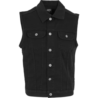 Vest for men made of robust jeans fabric with button placket 2 breast pockets left and right with buttons As part of a stylish streetwear outfit or perfect as a basic for a festival robe Available in black, Light Blue and Denim Blue in sizes S, M, L, XL and XXL One click on the brand logo leads to the URBAN CLASSICS Brand Store and even more trendy streetwear