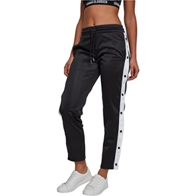 Urban Classics Women's Ladies Button Up Track Pants Sports Trousers, Blk/Wht/Blk , XS