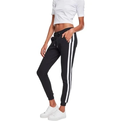 Casual and comfortable women's jogging bottoms with stripes on the side of the leg Perfect as sports trousers, for combination with streetwear outfits and the best choice for chilling on the couch The comfortable material combined with the casual cut ensure the highest level of comfort The casual track pants are available in 4 trendy colours A click on the brand logo leads to the Urban Classics Brand Store and even more trendy streetwear
