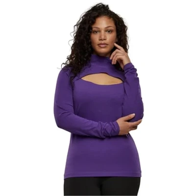 Urban Classics Women's Ladies Cut Out Turtleneck Longsleeve T Shirt, Realviolet, S