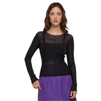 Urban Classics Women's Ladies Exposed Seam Mesh Longsleeve T Shirt, Black, XL