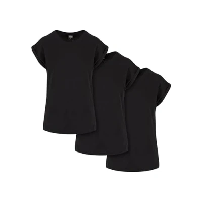 Urban Classics Women's Ladies Extended Shoulder Tee T Shirt, Black+Black+Black, S