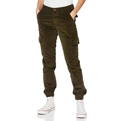 Urban Classics Women's Ladies High Waist Cargo Corduroy Pants Trouser, Dark Olive, L