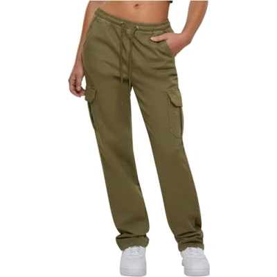 Urban Classics Women's Ladies High Waist Wide Leg Twill Cargo Pants, Olive, 8