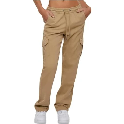 Urban Classics Women's Ladies High Waist Straight Cargo Pants, Black, 8
