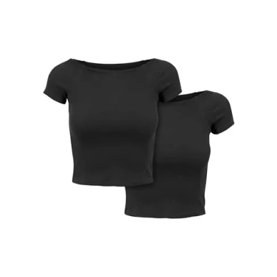 Urban Classics Women's Ladies Off Shoulder Rib Tee 2 Pack T Shirt, Black+Black, XS