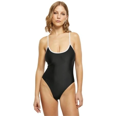 Urban Classics Women's Ladies Recycled Retro Swimsuit One Piece, Black/White, XXXL
