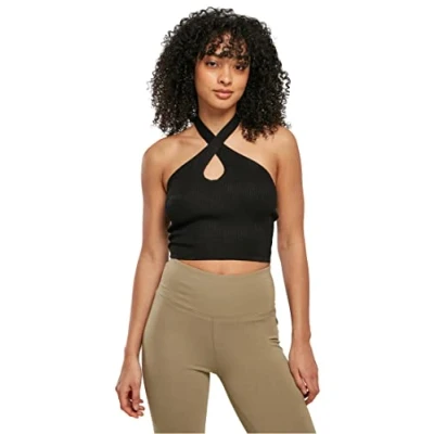 Urban Classics Women's Ladies Rib Knit Crossed Halter Top T Shirt, Black, XXXXXL
