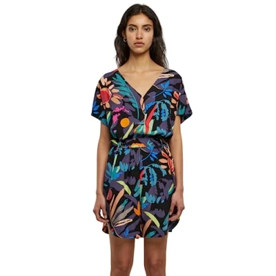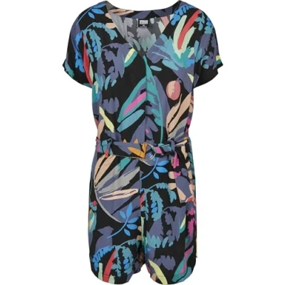 Urban Classics Women's Ladies Short Viscose Belt Jumpsuit T Shirt, blackfruity, L
