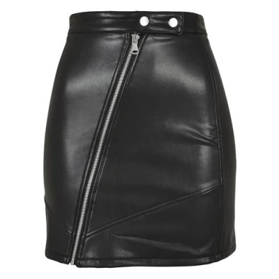 With its tight length, sleek material in faux leather look as well as the refined zip that runs diagonally across the front It is also complemented by diagonal, stitched seams The skirt sits feminine high in the waist and has a proven regular fit