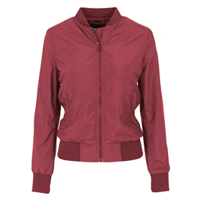 URBAN CLASSICS Women's Light Bomber Jacket with Ribbed Cuffs, Lightweight Flight for Mid Season Weather, Longsleeve Zipper & Pockets, Colour: Burgundy, Size: Large