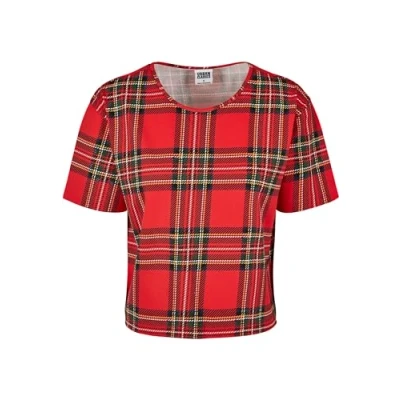 Urban Classics Women's T shirt Ladies All over print Tartan Oberteil Short Oversized Tee Shirt, Red (Red/Blk 00200), XS UK