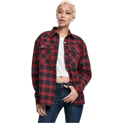 Urban Classics Women's Tb3627 ladies Oversized Overshirt Shirt, Midnight Navy/red, S/Plus Tall