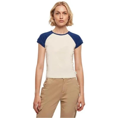 Urban Classics Women's Tb5075 ladies Organic Stretch Short Retro Baseball Tee T Shirt, Whitesand/Spaceblue, XS