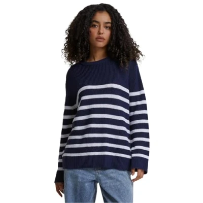 Trendy striped design: our ladies rib striped sweater combines classic stripes with modern flair, ideal for any trendsetter. Casual elegance: the loose fit gives a relaxed feel and makes the sweater a casual must-have in your wardrobe. COMFORTABLE MATERIAL: An even blend of 50% acrylic and 50% cotton ensures softness and comfort with every touch. VERSATILE COMBINABLE: Whether paired with jeans or leggings, this striped sweater is versatile and adapts effortlessly to any outfit. For any occasion: the sweater not only offers everyday comfort, but is also perfect for a chic casual Friday in the office.