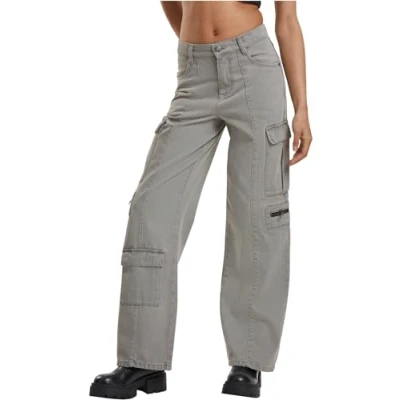 Urban Classics Women's Tb6925 ladies Loose Utility Denim Pants Casual, Lighter Dirty Washed, 2