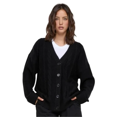 Urban Classics Women's Ladies Cabel Knit Cardigan Sweater, Black, XL