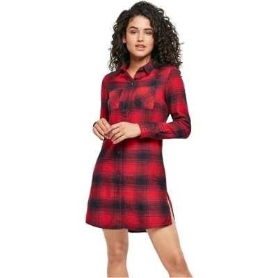 Urban Classics Women's Ladies Check Shirt Dress, Dark Blue/red, L