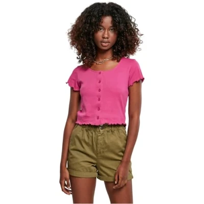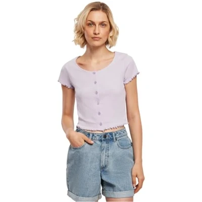 Urban Classics Women's Ladies Cropped Button Up Rib Tee T Shirt, Fliederfarben, XL