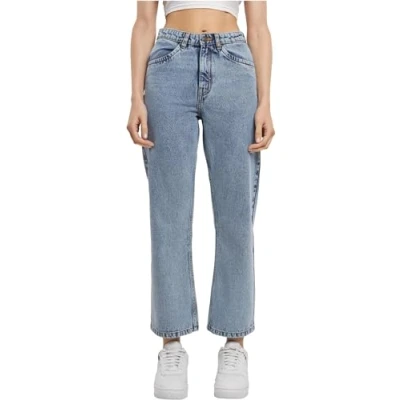 Urban Classics Women's Ladies Cropped Straight Leg Denim Pants Trouser, Tinted Lightblue Washed, 6