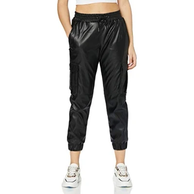Urban Classics Women's Ladies Faux Leather Cargo Pants Trouser, Black, 4XL