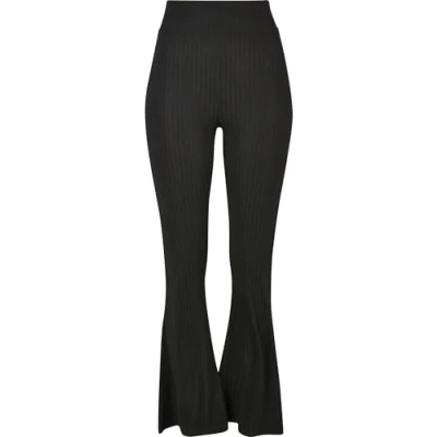 Urban Classics Women's Ladies High Waist Rib Flared Leggings Yoga Pants, Black, XL