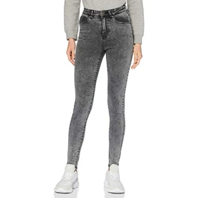 Urban Classics Women's Ladies High Waist Skinny Jeans Hose, Black heavy acid washed, 28W x 32L