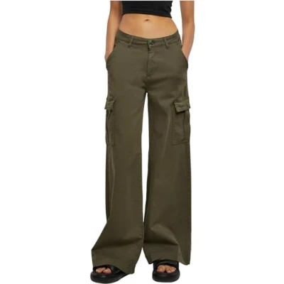 Urban Classics Women's Trousers Ladies High Waist Wide Leg Twill Cargo Pants Olive 34