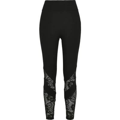 Urban Classics Women's Ladies Highwaist Lace Inset Leggings, Black, 5XL