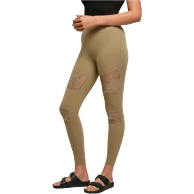 Urban Classics Women's Ladies Laces Inset Leggings, Khaki, XS