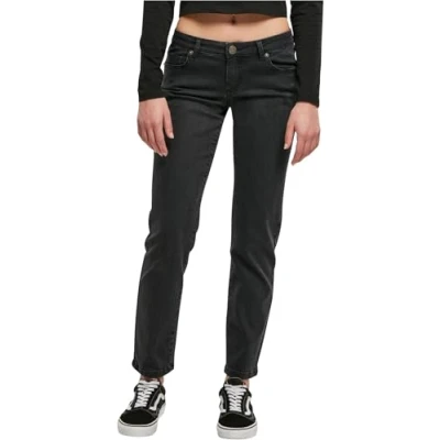 Urban Classics Women's Ladies Low Waist Straight Denim Pants, Black Washed, 27