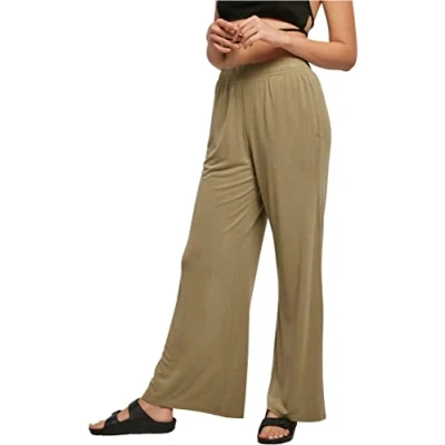 Urban Classics Women's Ladies Modal Wide Leg Pants Trouser, Khaki, M