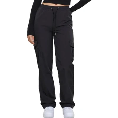 Urban Classics Women's Ladies Nylon Cargo Pants, Black, L
