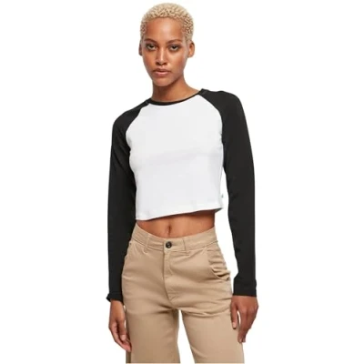 Urban Classics Women's Ladies Organic Cropped Retro Baseball Longsleeve T Shirt, White/Black, M