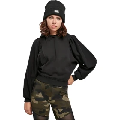 Urban Classics Women's Ladies Organic Gathering Batwing Hoody Hooded Sweatshirt, Black, S