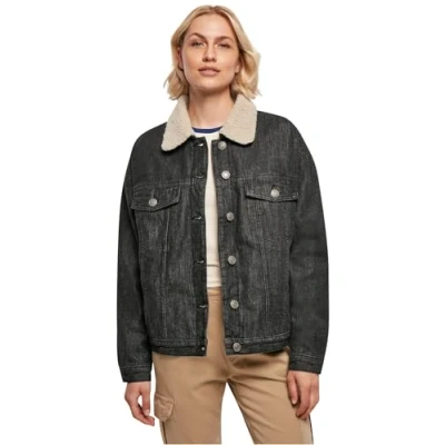 Urban Classics Women's Ladies Oversized Sherpa Denim Jacket, Black Washed, M