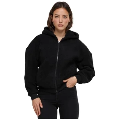Urban Classics Women's Ladies Oversized Sherpa Zip Hoody Hooded Sweatshirt, Black, XS