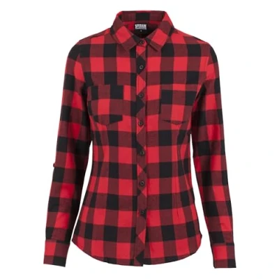 Urban Classics Women's Ladies Turnup Checked Flanell Shirt, blk/red , XL