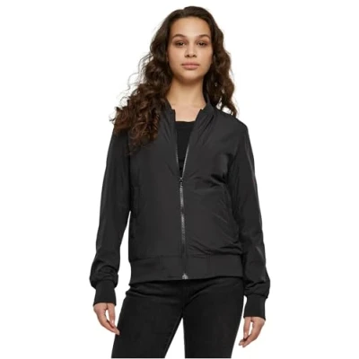 URBAN CLASSICS Women's Light Bomber Jacket with Ribbed Cuffs, Lightweight Flight for Mid Season Weather, Longsleeve Zipper & Pockets, Colour: Black, Size: X Large
